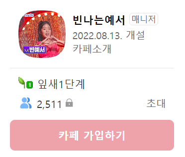 미스트롯3에서 활약하고 있는 빈예서 공식 팬카페 이름은 빈나는예서 입니다. 빛나는 예서를 발음 나는 대로 빈나는예서로 센스 있고 귀엽게 팬카페 이름을 지었습니다. 빈예서양 만큼이나 팬카페 회원분들도 귀여운 면이 있는 것 같습니다.